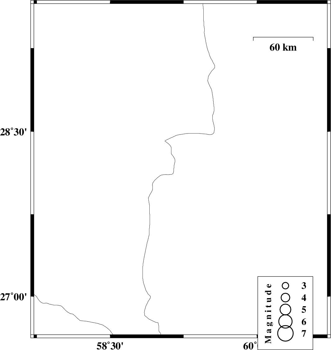 | 2011/03/21 | 06:02:22.5 | 09:32:22.5 | 27.88 | 59.27 | 18 | ML4.2 | Sistan va Baloochestan Province, 155 km East of Kahnuj | ||