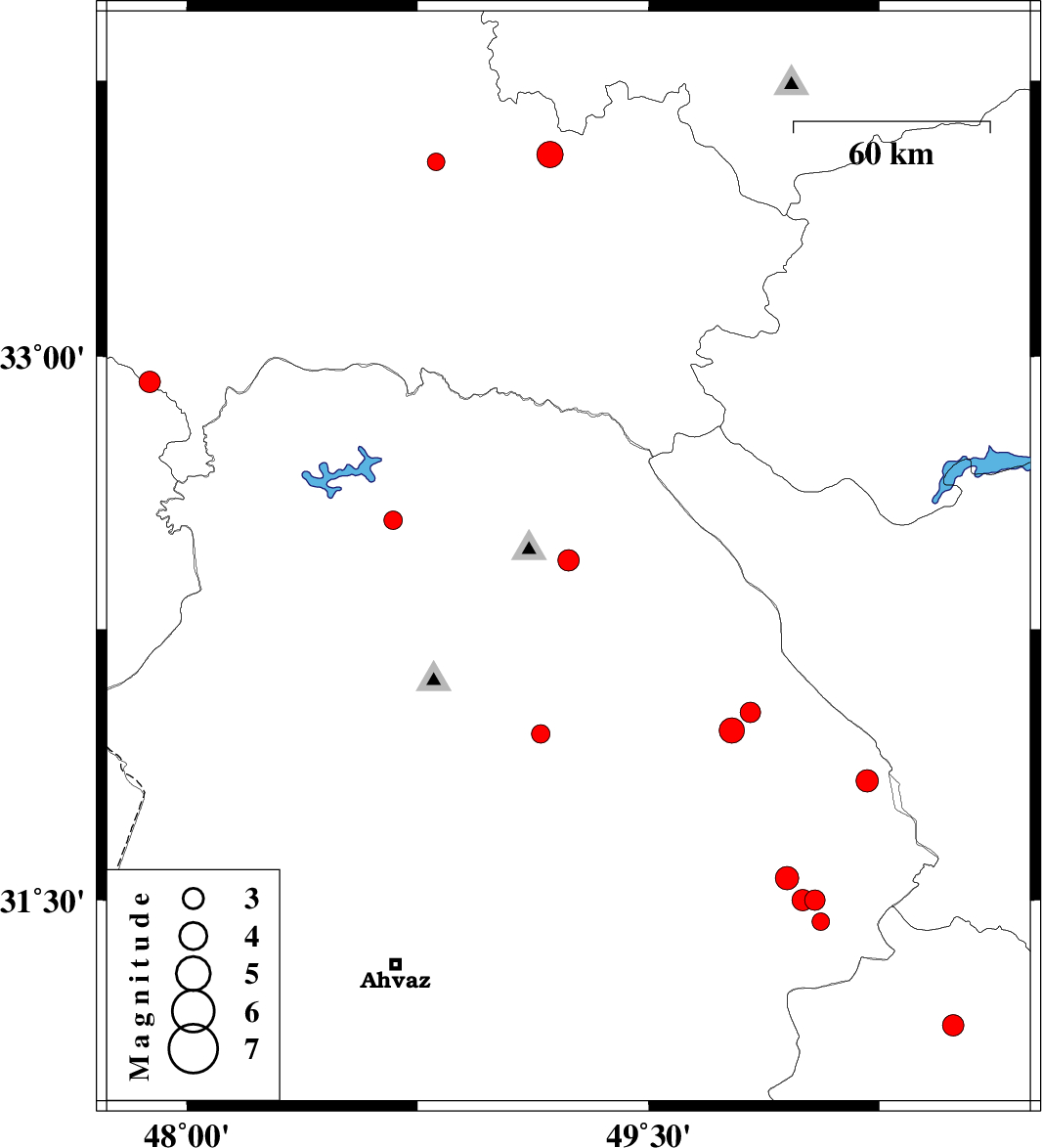 | 2011/03/18 | 05:39:31.9 | 09:09:31.9 | 31.5 | 50.04 | 17 | ML2.9 | Khoozestan Province, 13 km East of Bagh Malek | ||