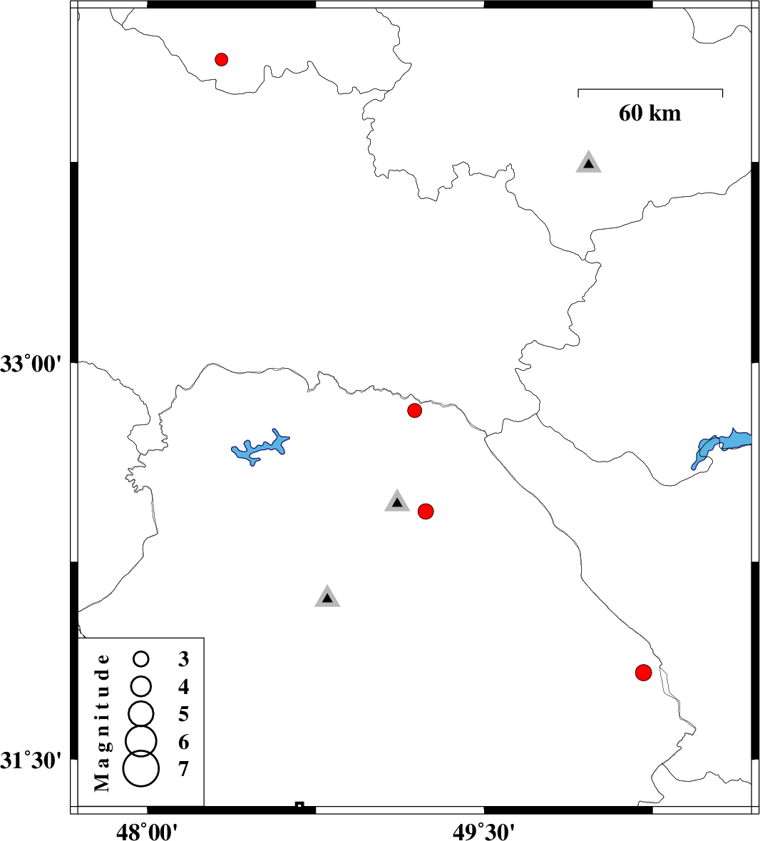 | 2011/03/27 | 01:08:59.0 | 05:38:59.0 | 31.83 | 50.21 | 14 | ML3.2 | Khoozestan Province, 32 km East of Izeh |