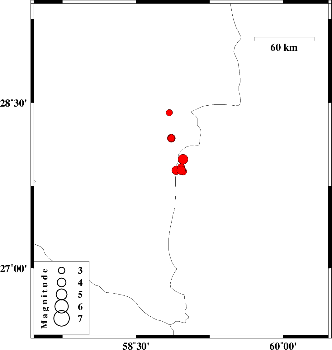 2011/04/11 12:02:15.3 16:32:15.3 27.8958.9115 ML4 Sistan va Baloochestan Province, 120 km East of Kahnuj