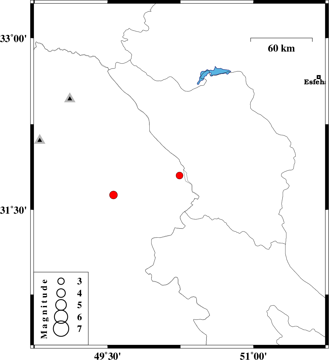| 2011/04/19 | 15:43:13.6 | 20:13:13.6 | 31.63 | 49.56 | 14 | ML3.7 | Khoozestan Province, 39 km North of Ramhormoz |