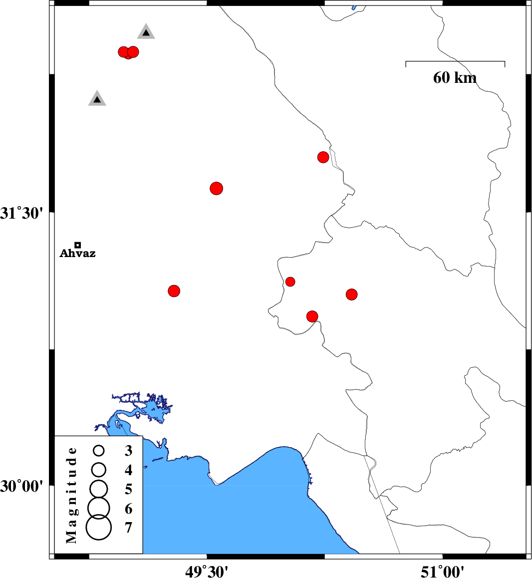| 2011/04/19 | 15:43:13.6 | 20:13:13.6 | 31.63 | 49.56 | 14 | ML3.7 | Khoozestan Province, 39 km North of Ramhormoz | ||