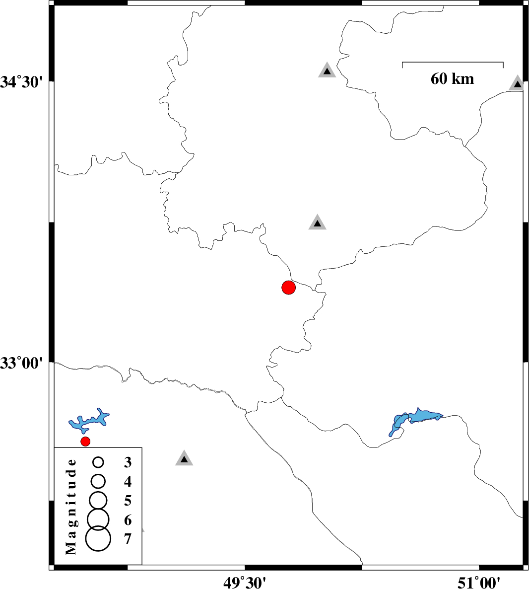 | 2011/05/12 | 05:37:45.4 | 10:07:45.4 | 33.4 | 49.78 | 14 | ML3.9 | Lorestan Province, 8 km Aligudarz | ||