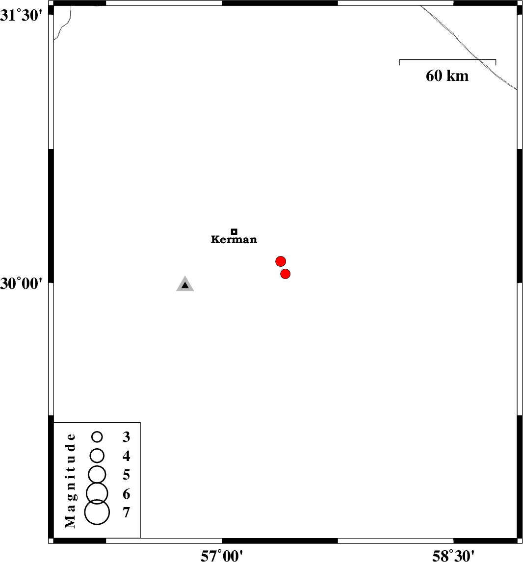 2011/05/11 20:14:48.5 00:44:48.5 30.1257.386 ML3 Kerman Province, 35 km South-East of Kerman