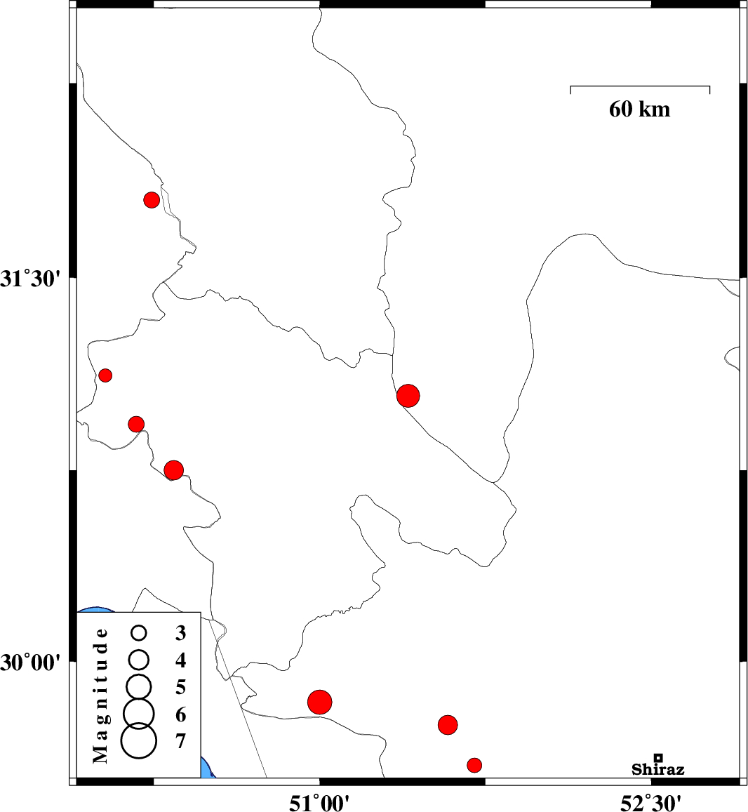 | 2011/05/03 | 18:24:50.0 | 22:54:50.0 | 29.59 | 51.7 | 15 | ML3 | Fars Province, 5 km Kazerun | ||