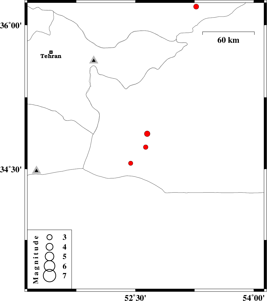 | 2011/05/08 | 04:02:58.5 | 08:32:58.5 | 34.87 | 52.65 | 15 | ML3.2 | Semnan Province, 49 km South-East of Garmsar | ||