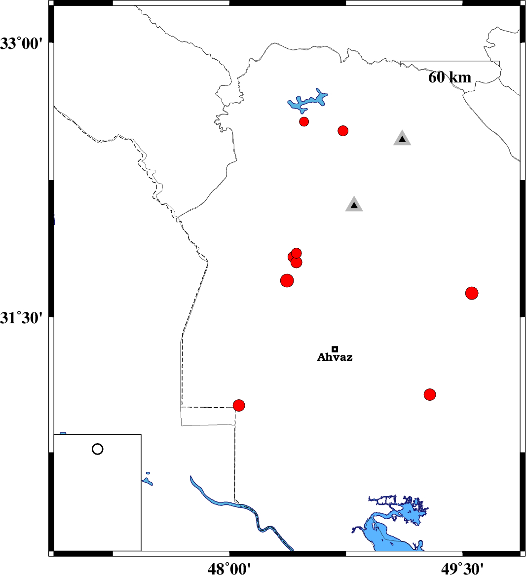 | 2011/05/15 | 13:32:13.3 | 18:02:13.3 | 31.8 | 48.43 | 14 | ML3.2 | Khoozestan Province, 36 km North-East of Susangerd | ||