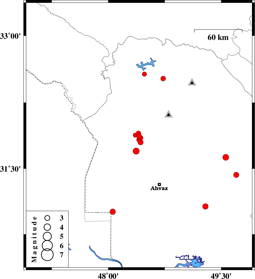 | 2011/05/14 | 09:43:40.4 | 14:13:40.4 | 32.52 | 48.73 | 14 | ML3 | Khoozestan Province, 36 km East of Andimeshk | ||
