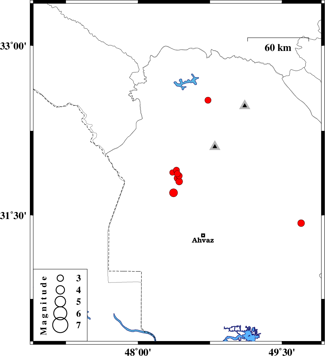 | 2011/05/14 | 09:43:40.4 | 14:13:40.4 | 32.52 | 48.73 | 14 | ML3 | Khoozestan Province, 36 km East of Andimeshk | ||