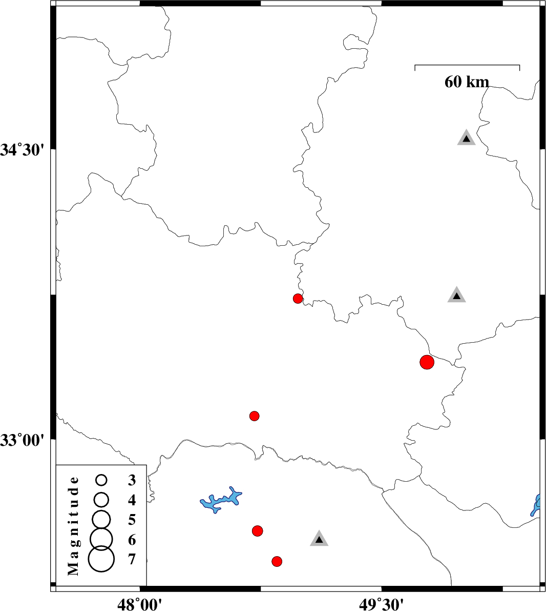 | 2011/05/12 | 05:37:45.4 | 10:07:45.4 | 33.4 | 49.78 | 14 | ML3.9 | Lorestan Province, 8 km Aligudarz |