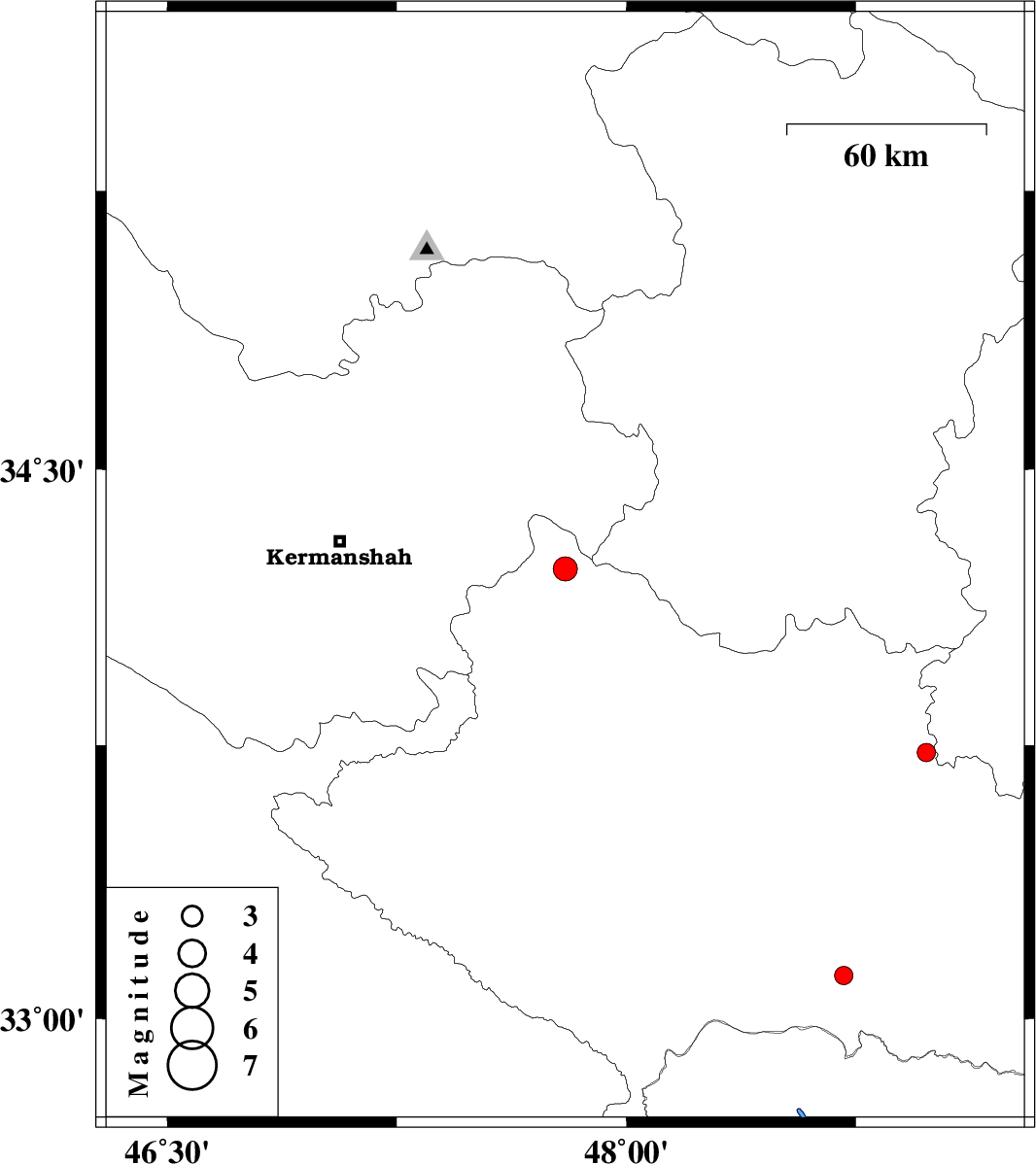 | 2011/05/30 | 20:19:11.1 | 00:49:11.1 | 34.23 | 47.8 | 18 | ML3.5 | Lorestan Province, 22 km East of Harsin | ||