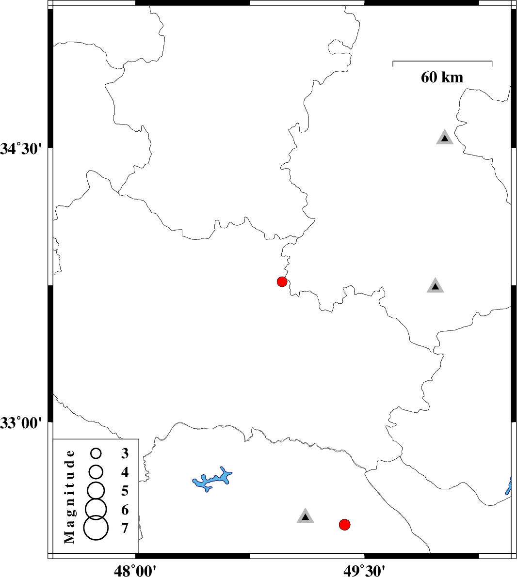 | 2011/06/13 | 10:08:12.6 | 14:38:12.6 | 33.77 | 48.96 | 15 | ML3 | Lorestan Province, 23 km South-East of Borujerd | ||