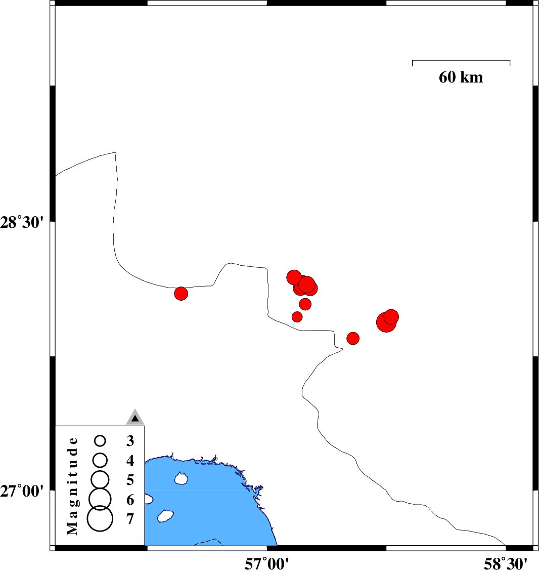2011/06/15 05:09:00.9 09:39:00.9 27.9757.1945 ML3 Kerman Province, 49 km West of Kahnuj