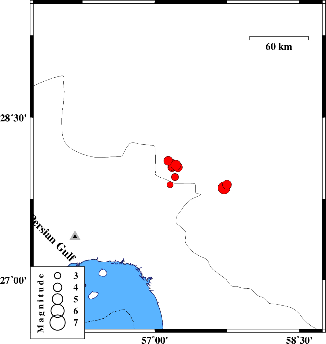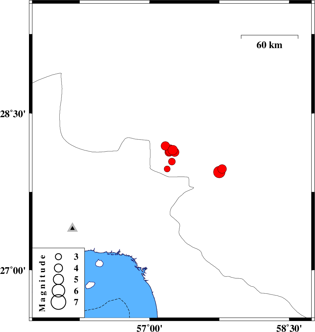2011/06/15 05:09:00.9 09:39:00.9 27.9757.1945 ML3 Kerman Province, 49 km West of Kahnuj