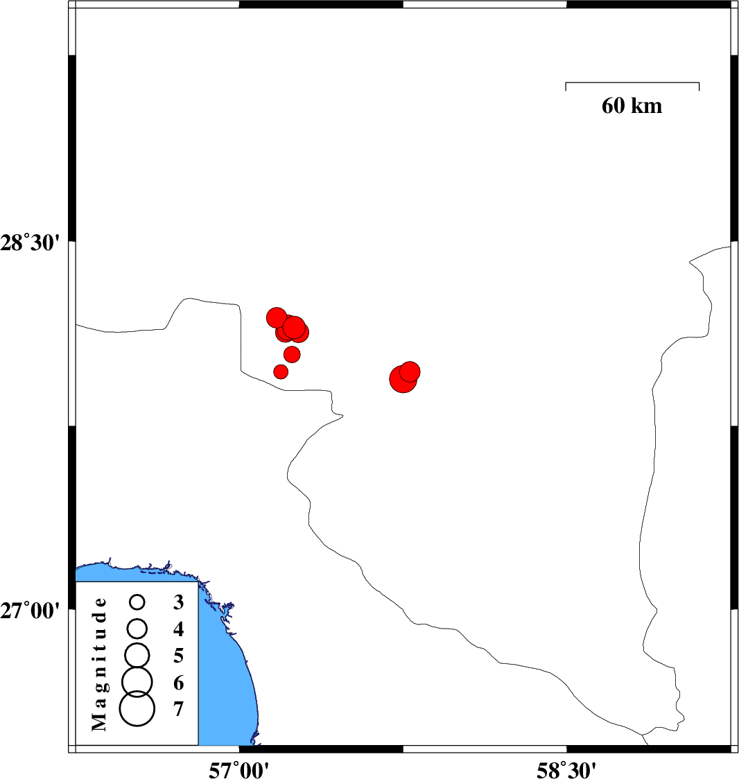 2011/06/15 05:09:00.9 09:39:00.9 27.9757.1945 ML3 Kerman Province, 49 km West of Kahnuj