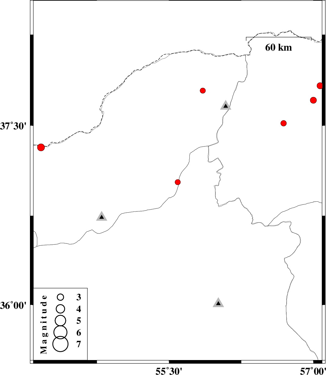 | 2011/05/27 | 20:15:24.3 | 00:45:24.3 | 37.79 | 55.85 | 20 | ML2.5 | Golestan Province, 55 km North-East of Kalaleh | ||