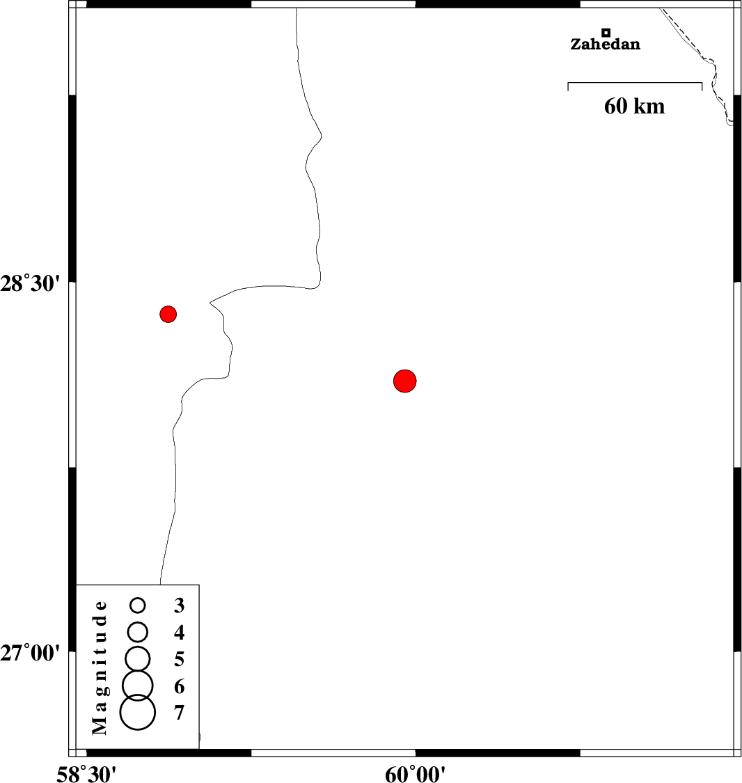 | 2011/05/31 | 12:28:23.2 | 16:58:23.2 | 28.37 | 58.87 | 45 | ML3.4 | Kerman Province, 96 km South-East of Bam |