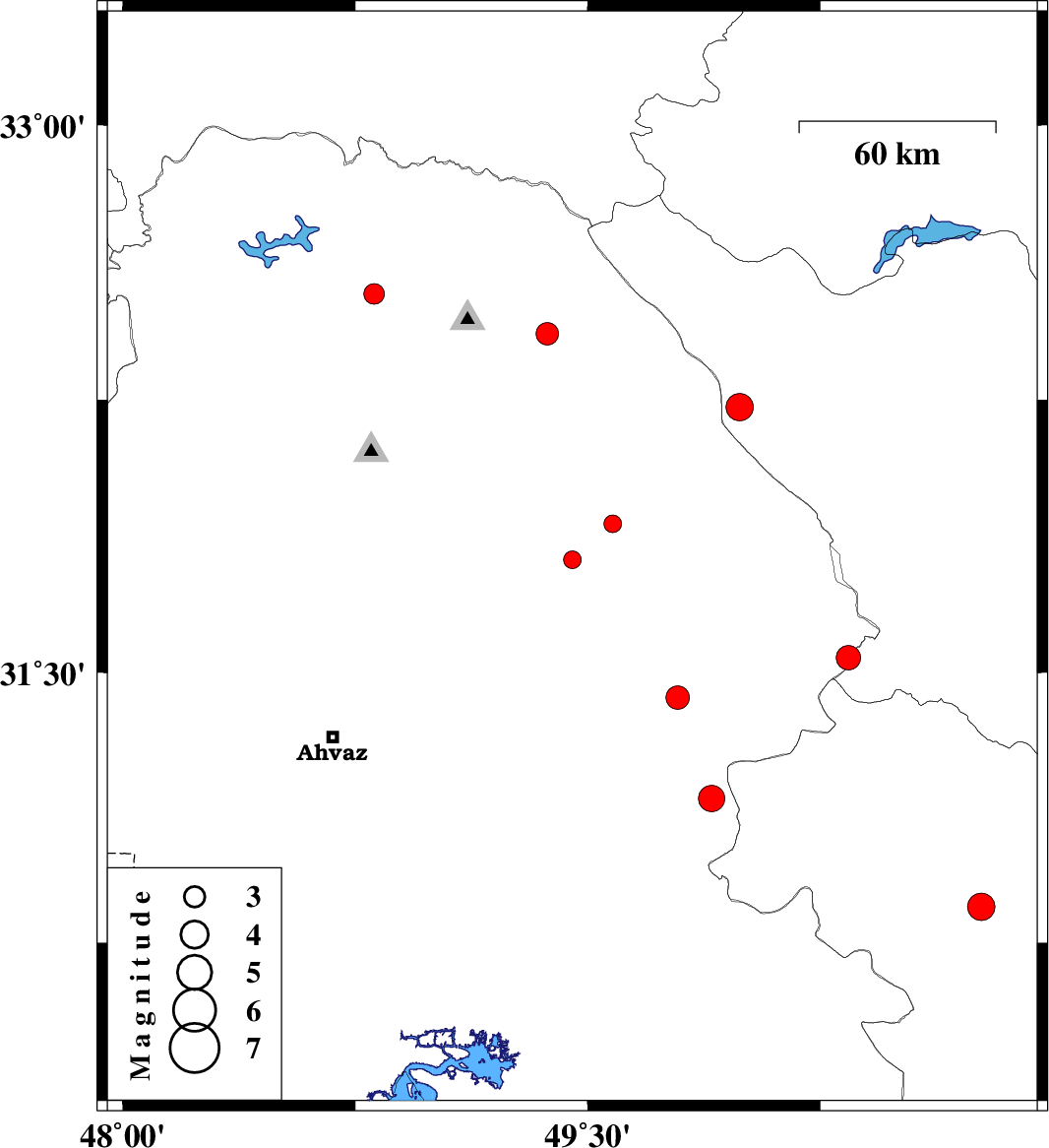 | 2011/06/12 | 04:06:26.1 | 08:36:26.1 | 32.43 | 49.37 | 15 | ML3.2 | Khoozestan Province, 25 km East of Lali | ||