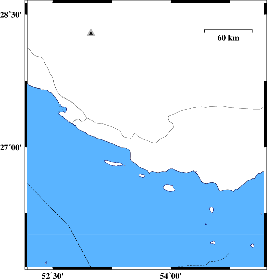 | 2011/06/29 | 10:20:51.4 | 14:50:51.4 | 27.78 | 55.11 | 15 | ML3.1 | Fars Province, 76 km North-East of Lar | ||