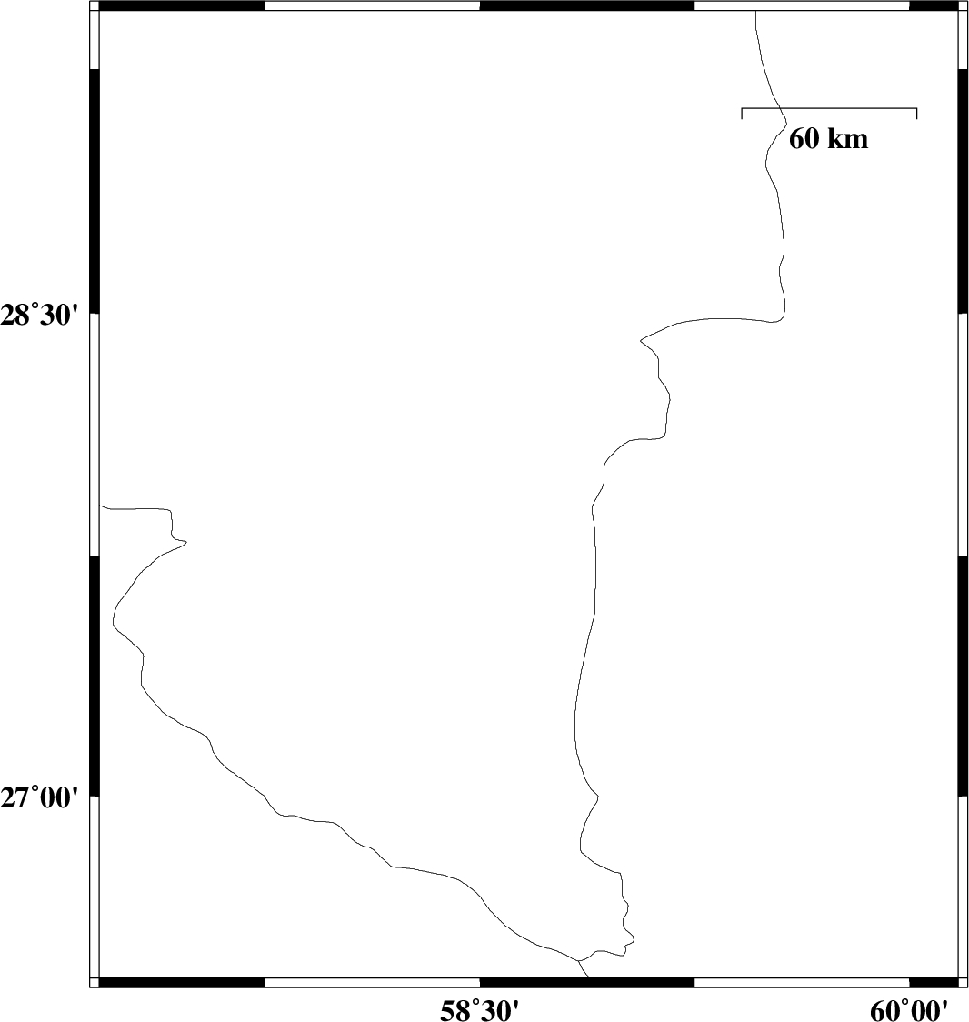 | 2011/06/15 | 01:03:23.0 | 05:33:23.0 | 28.16 | 57.22 | 15 | ML4.3 | Kerman Province, 53 km North-West of Kahnuj |
