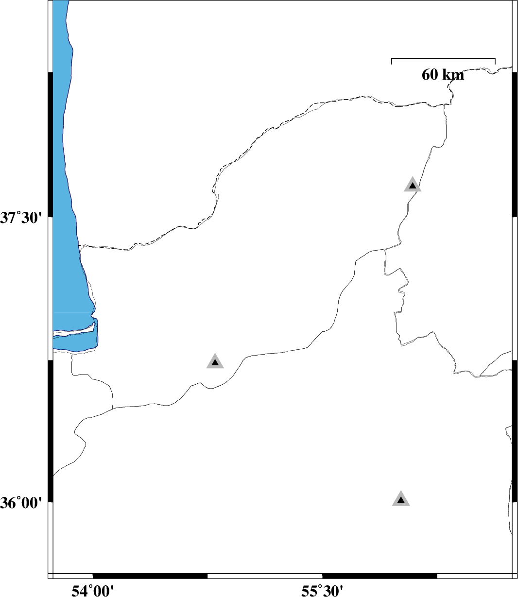 | 2011/07/09 | 03:26:53.1 | 07:56:53.1 | 37.1 | 55.35 | 15 | ML2.7 | Golestan Province, 15 km South of Minodasht |