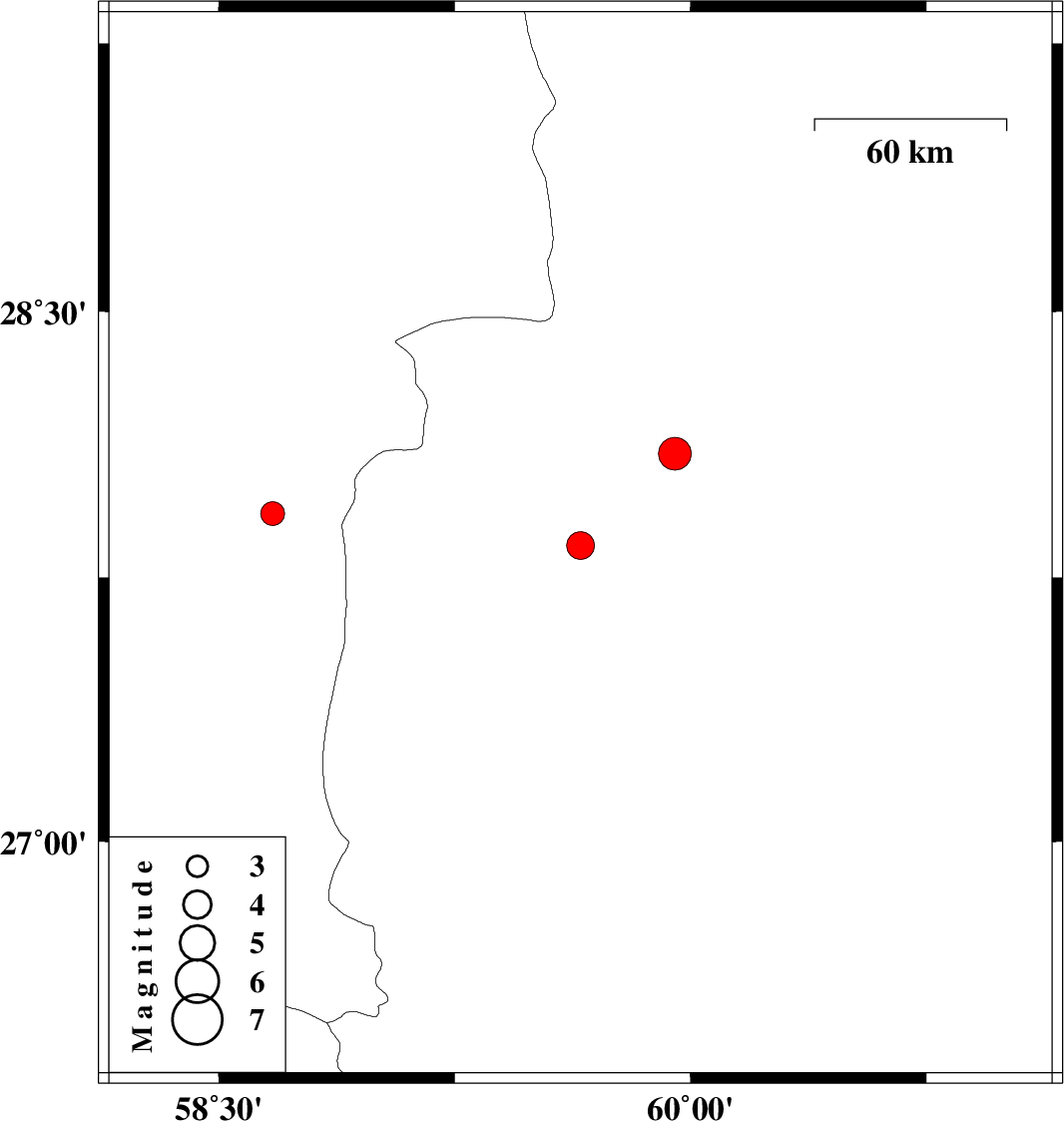 | 2011/07/10 | 19:04:47.5 | 23:34:47.5 | 27.84 | 59.65 | 16 | ML4 | Sistan va Baloochestan Province, 125 km North-West of Iranshahr | ||