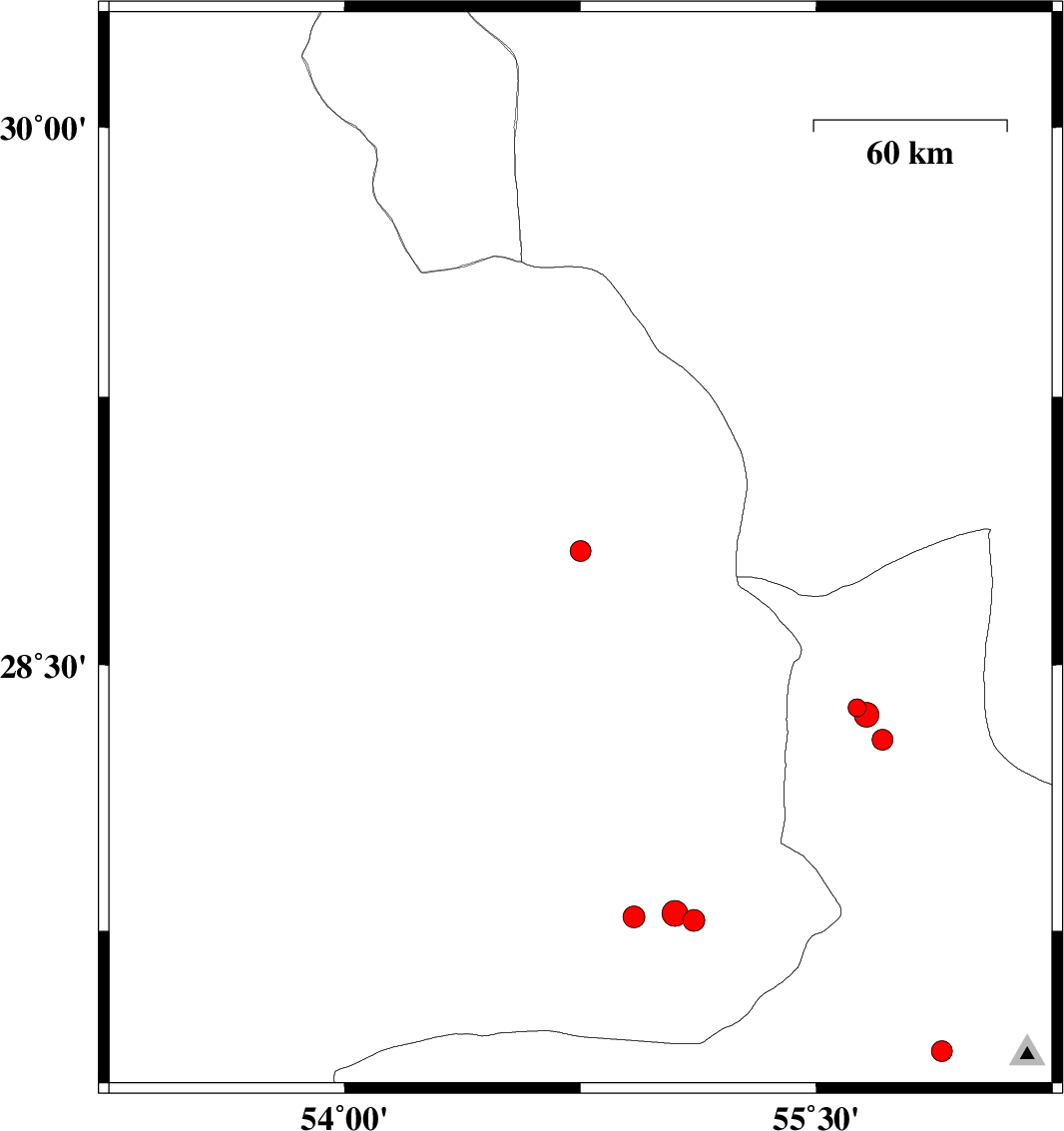 | 2011/06/29 | 09:54:25.6 | 14:24:25.6 | 27.8 | 55.05 | 15 | ML3.7 | Fars Province, 72 km North-East of Lar | ||