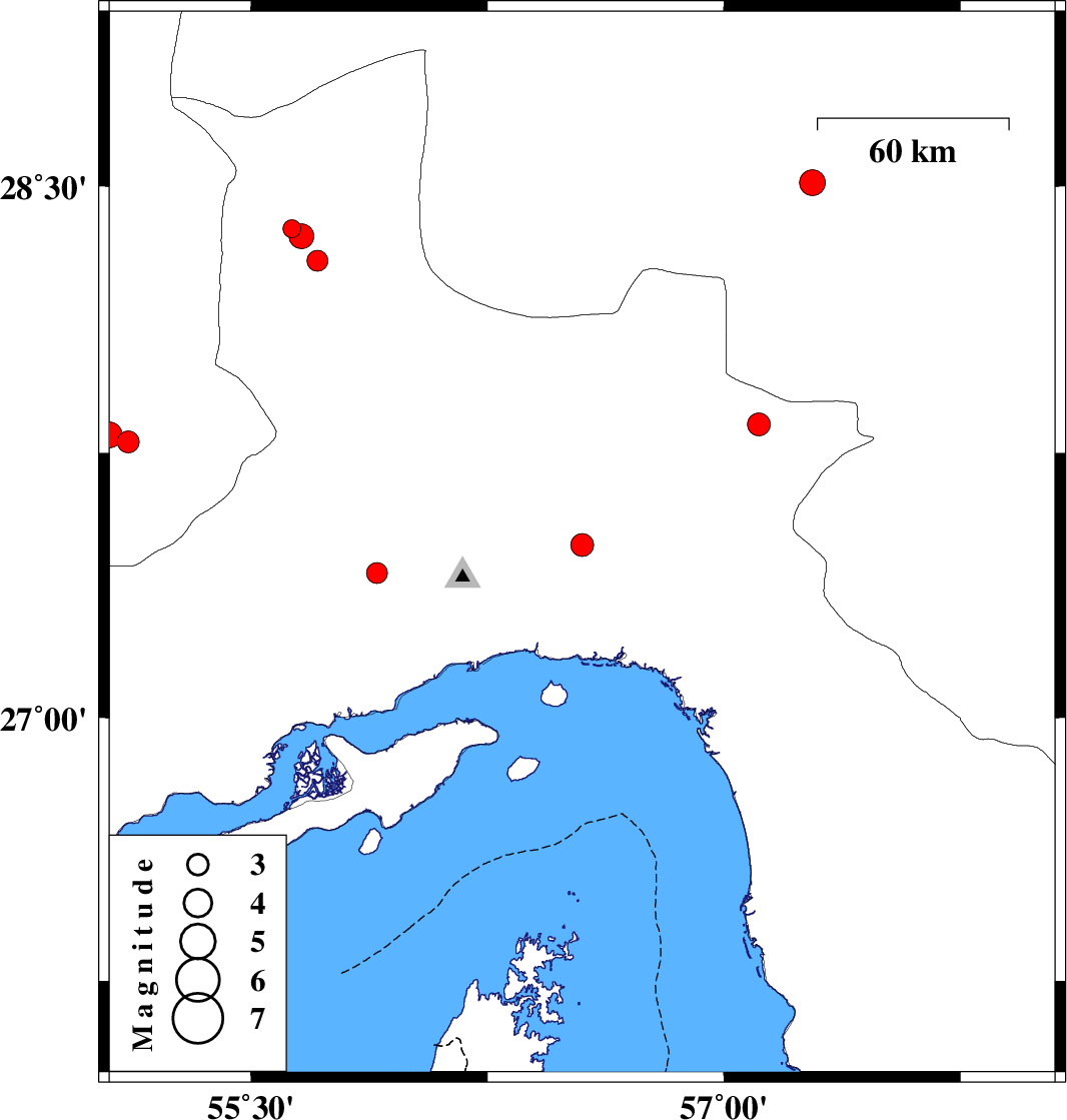 | 2011/06/29 | 10:20:51.4 | 14:50:51.4 | 27.78 | 55.11 | 15 | ML3.1 | Fars Province, 76 km North-East of Lar | ||
