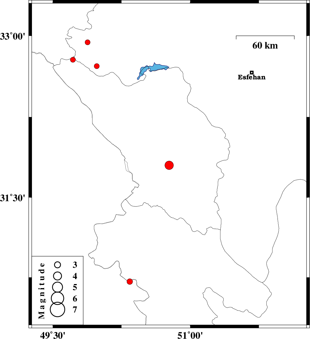 | 2011/07/10 | 14:29:20.8 | 18:59:20.8 | 32.78 | 49.72 | 14 | ML2.6 | Chaharmahal Bakhtiari Province, 40 km South-West of Fereydunshahr |
