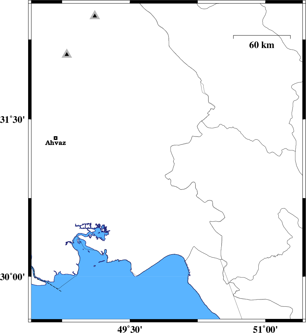 | 2011/08/04 | 01:54:37.6 | 06:24:37.6 | 31.09 | 49.91 | 14 | ML3.2 | Khoozestan Province, 47 km South of Bagh Malek | ||