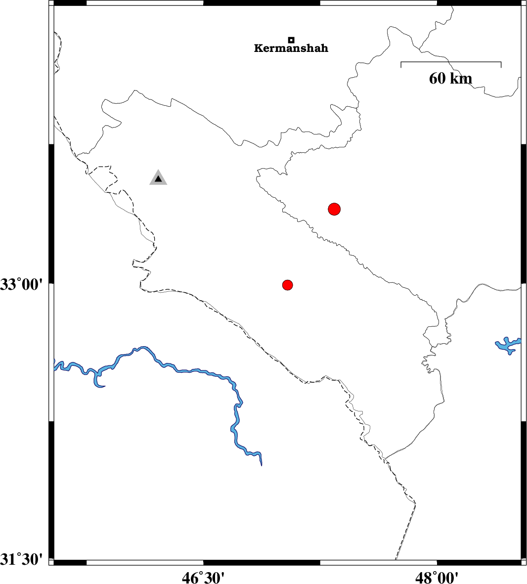 | 2011/07/17 | 11:59:04.0 | 16:29:04.0 | 33.4 | 47.34 | 16 | ML3.5 | Lorestan Province, 30 km North of Darreh Shahr |