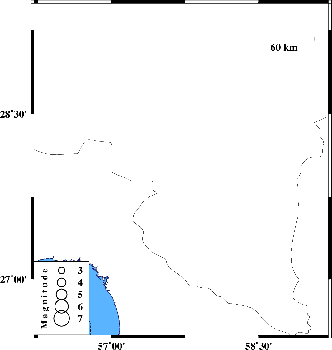 | 2011/08/07 | 15:03:37.9 | 19:33:37.9 | 27.99 | 57.71 | 14 | ML3.1 | Kerman Province, 4 km Kahnuj |