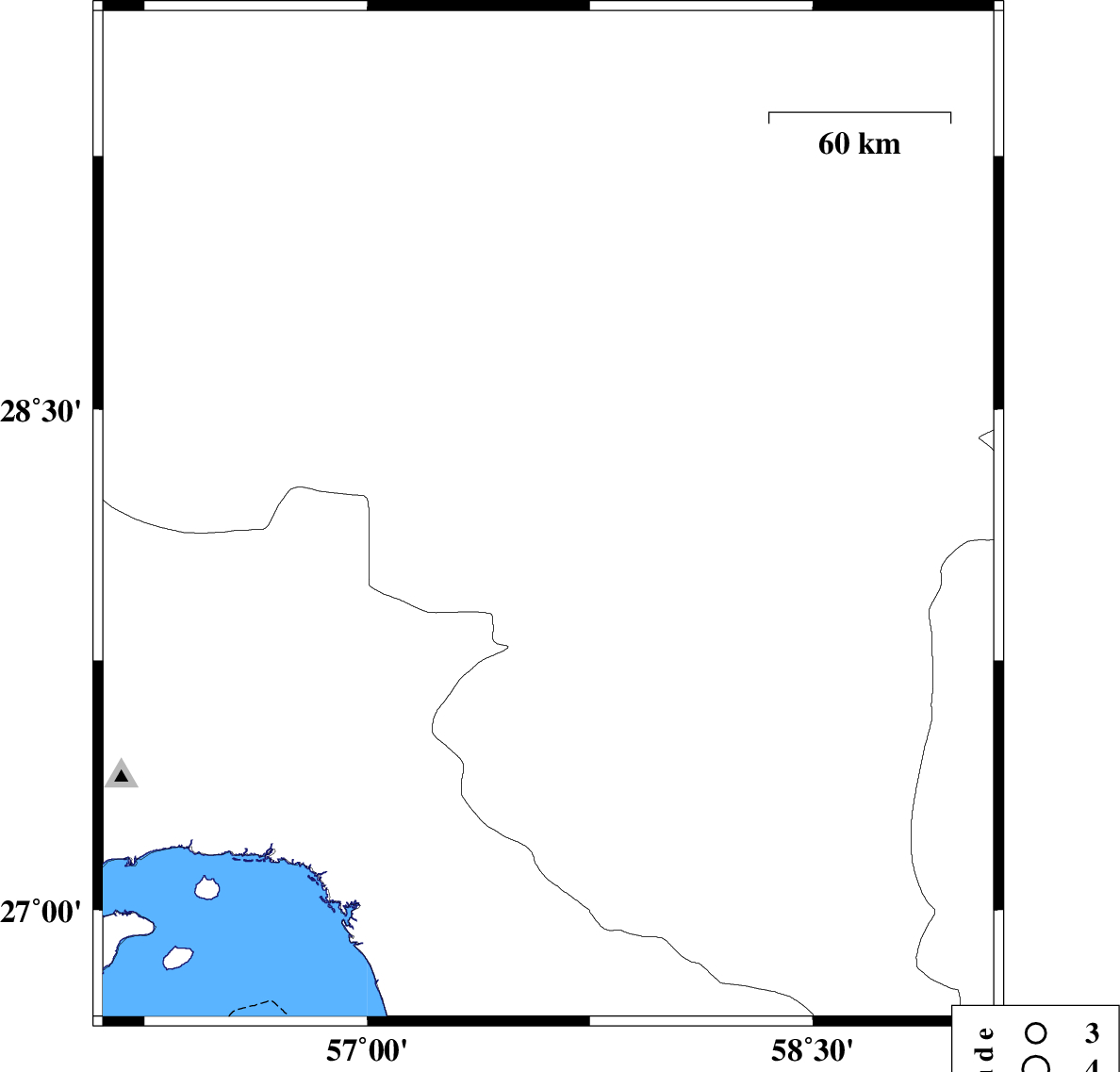 | 2011/07/29 | 13:42:27.8 | 18:12:27.8 | 28.28 | 57.51 | 14 | ML4.1 | Kerman Province, 41 km North-West of Kahnuj | ||