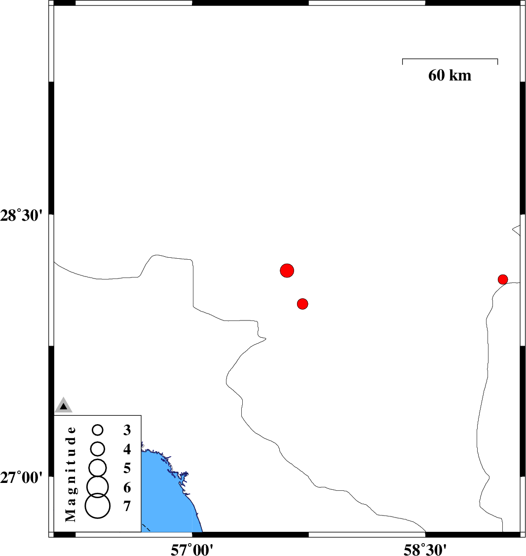 2011/08/09 01:07:26.5 05:37:26.5 28.135914 ML2.8 Kerman Province, 130 km North-East of Kahnuj