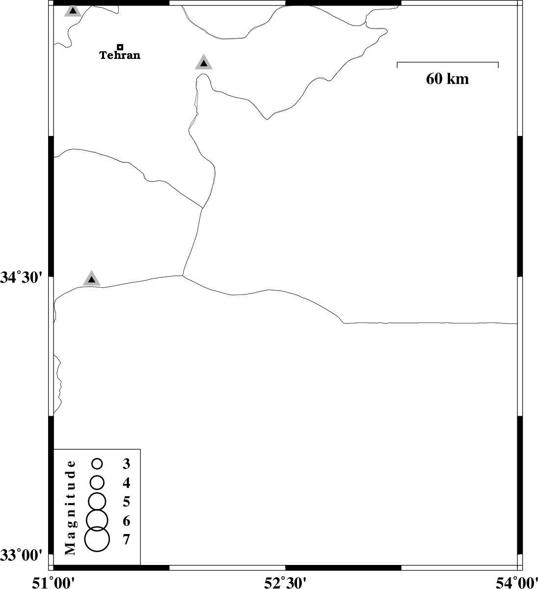 | 2011/08/11 | 02:59:08.6 | 07:29:08.6 | 34.44 | 52.5 | 17 | ML3.5 | Semnan Province, 88 km South-East of Garmsar |