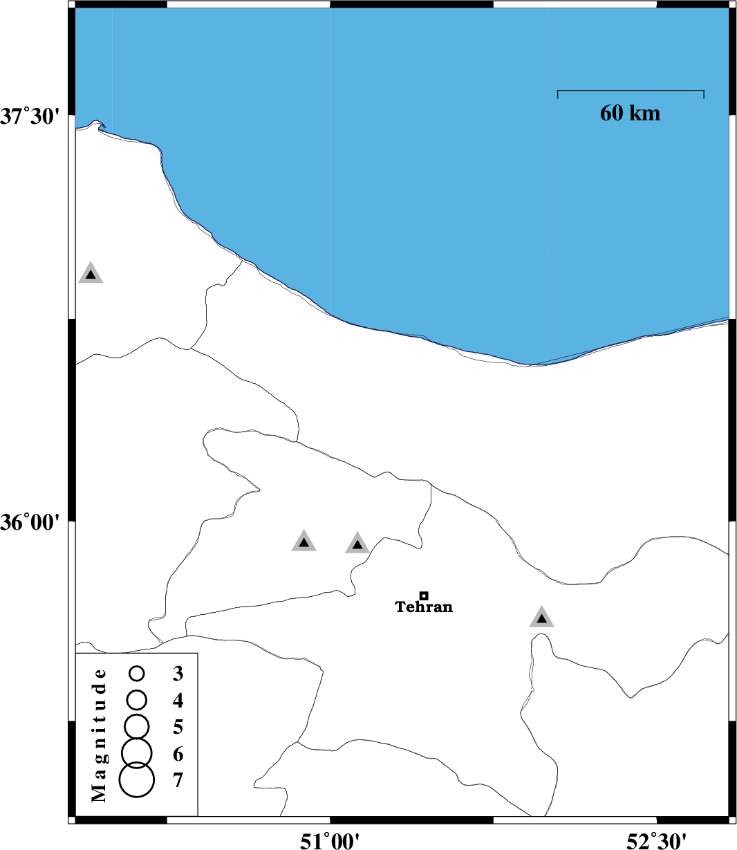 | 2011/08/11 | 12:28:35.6 | 16:58:35.6 | 36.39 | 51.33 | 14 | ML2.6 | Mazandaran Province, 30 km South of Chalus |