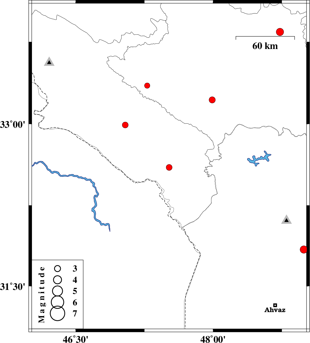 | 2011/08/18 | 11:17:09.6 | 15:47:09.6 | 32.6 | 47.52 | 14 | ML2.9 | Ilam Province, 27 km East of Dehloran | ||