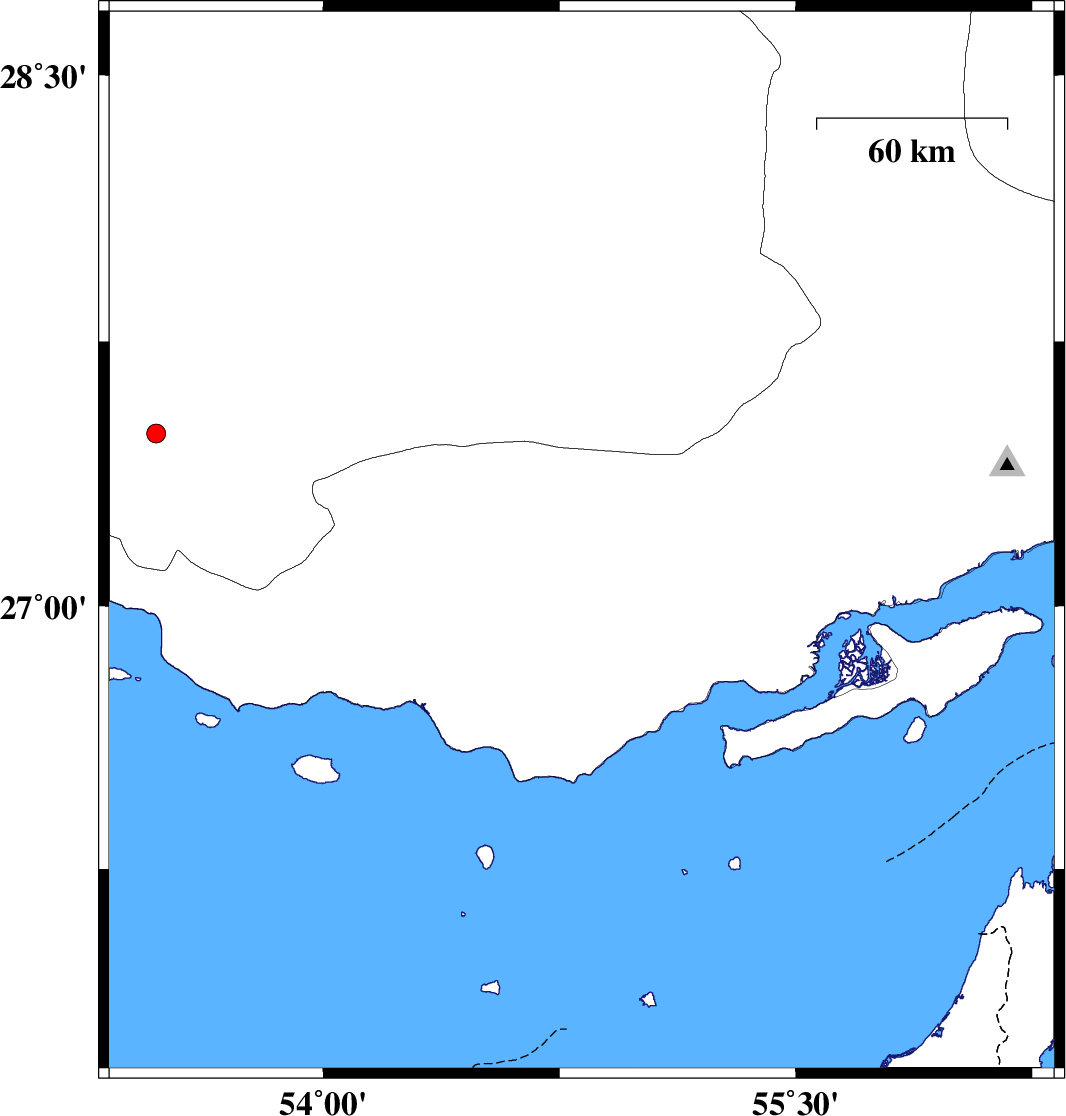 | 2011/08/02 | 02:13:54.6 | 06:43:54.6 | 27.34 | 53.39 | 14 | ML3 | Fars Province, 22 km East of Lamerd | ||