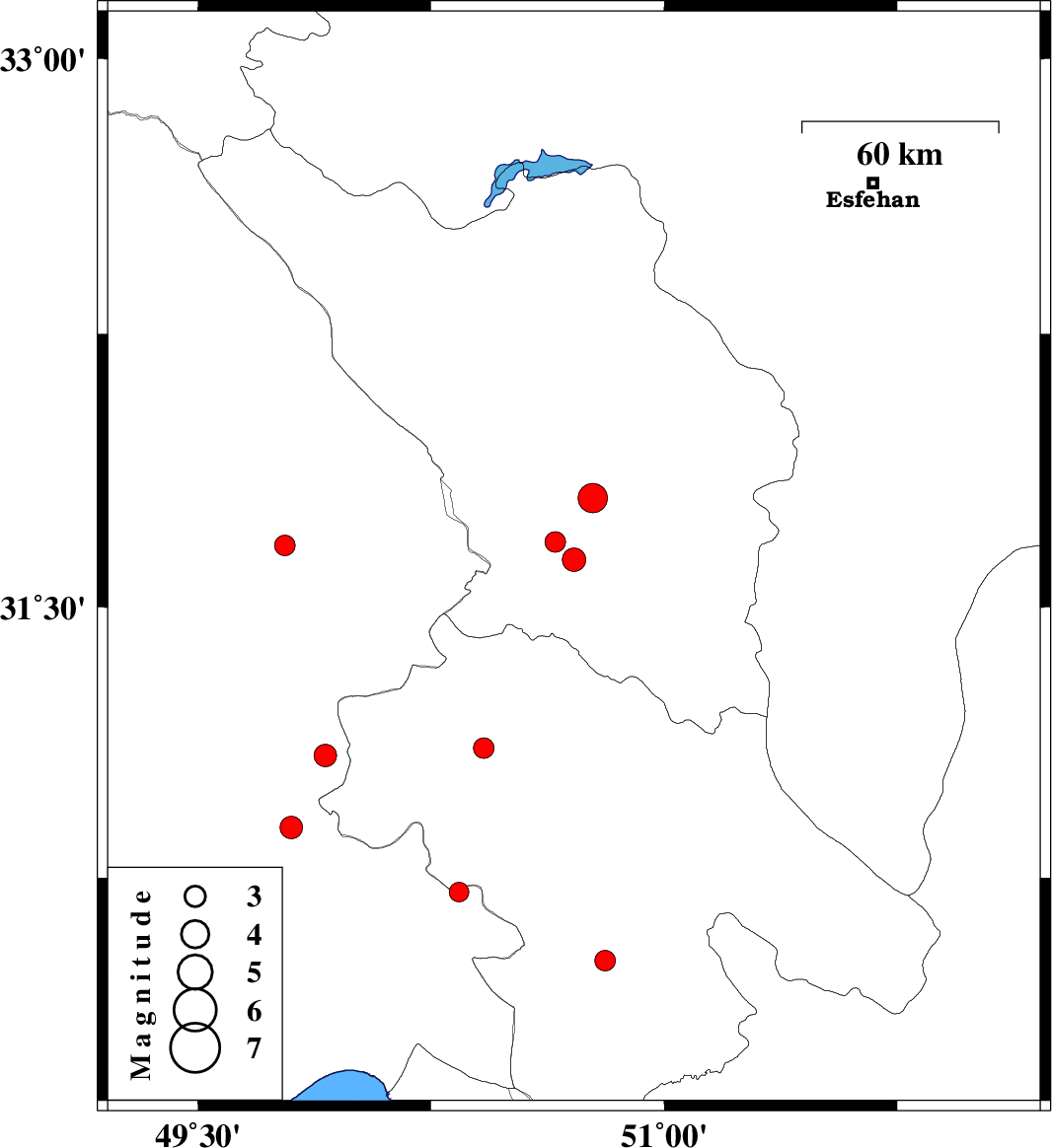 | 2011/08/23 | 13:46:44.1 | 18:16:44.1 | 31.63 | 50.71 | 14 | ML3.4 | Chaharmahal Bakhtiari Province, 17 km North-West of Lordegan | ||
