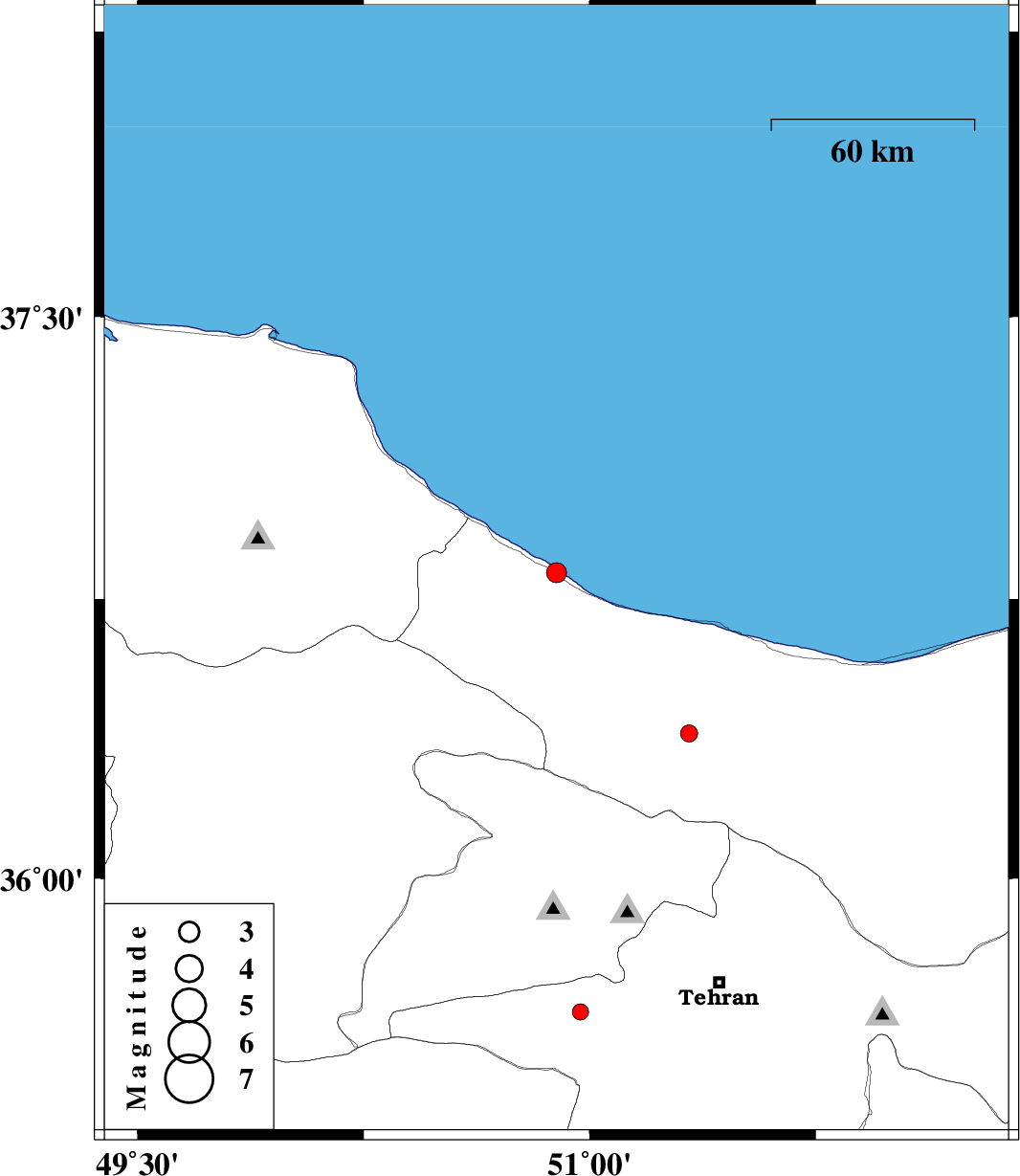 | 2011/08/11 | 12:28:35.6 | 16:58:35.6 | 36.39 | 51.33 | 14 | ML2.6 | Mazandaran Province, 30 km South of Chalus | ||