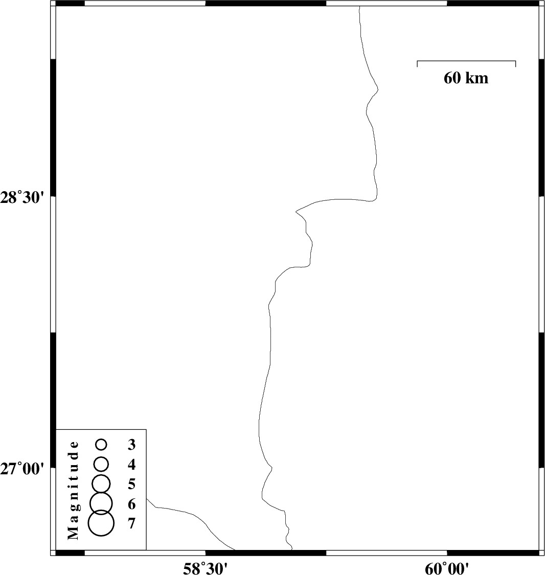 | 2011/08/25 | 20:33:36.7 | 01:03:36.7 | 28.04 | 59.07 | 14 | ML3 | Sistan va Baloochestan Province, 136 km East of Kahnuj |