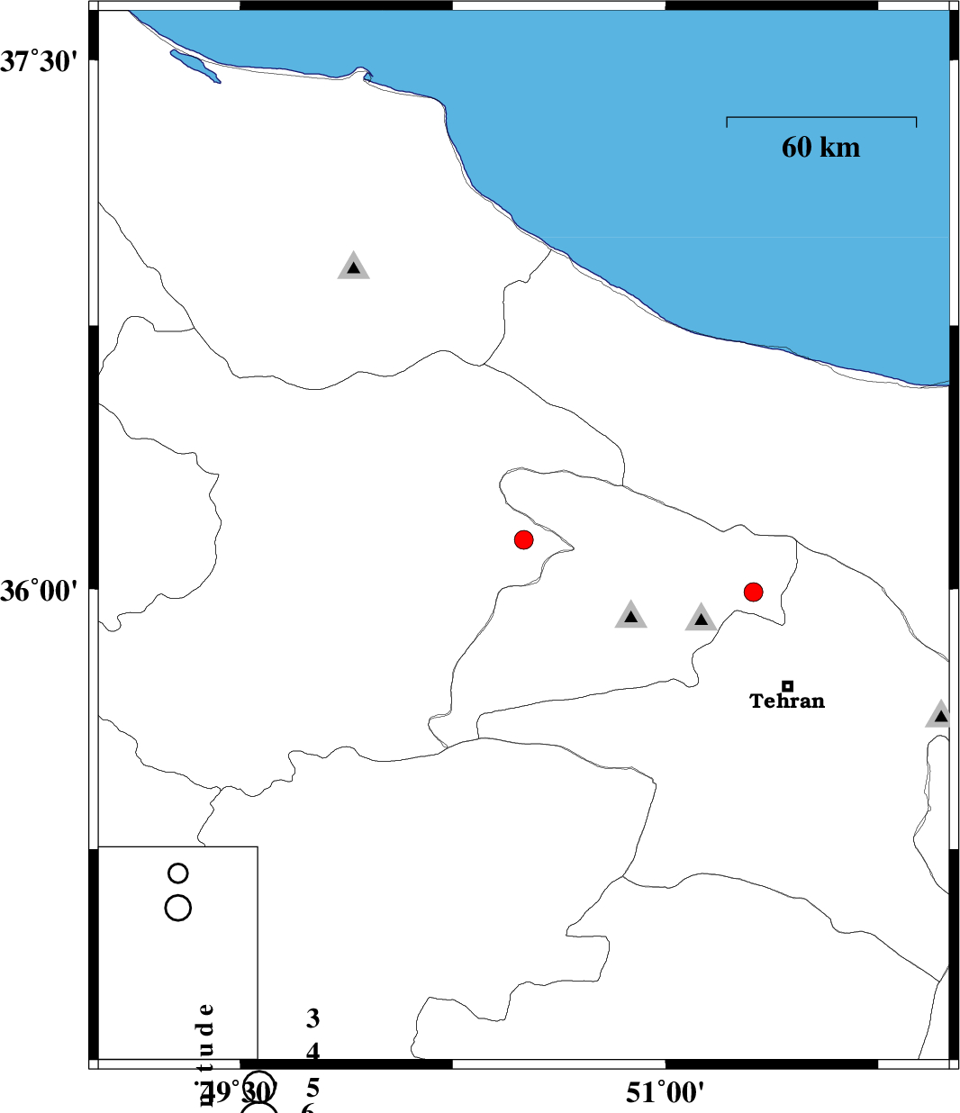 | 2011/08/30 | 09:41:16.7 | 14:11:16.7 | 35.99 | 51.31 | 14 | ML2.9 | Tehran Province, 24 km North-West of Tajrish |