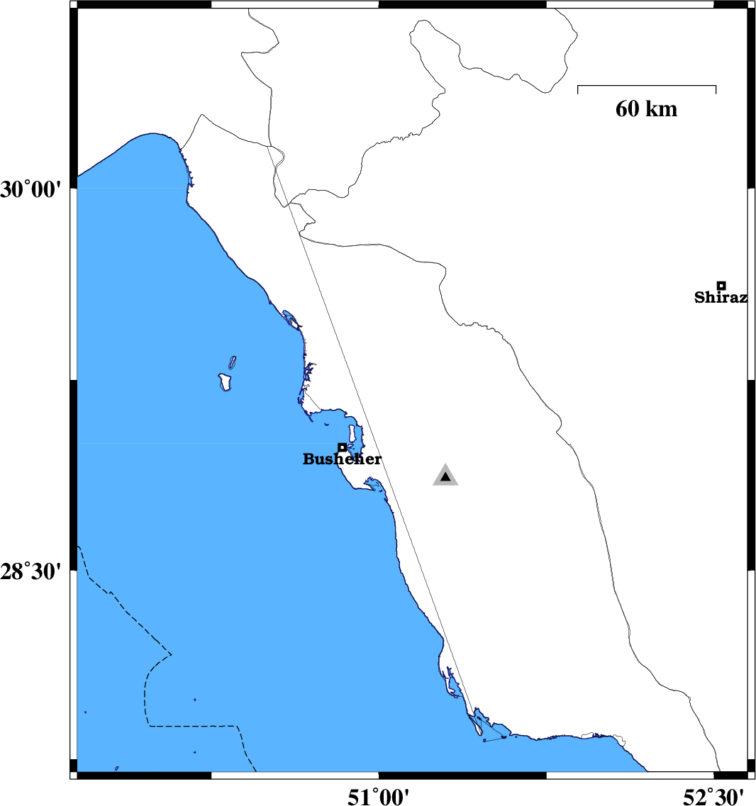 | 2011/09/07 | 17:40:04.4 | 22:10:04.4 | 29.2 | 51.15 | 15 | ML3.7 | Bushehr Province, 8 km Borazjan | ||