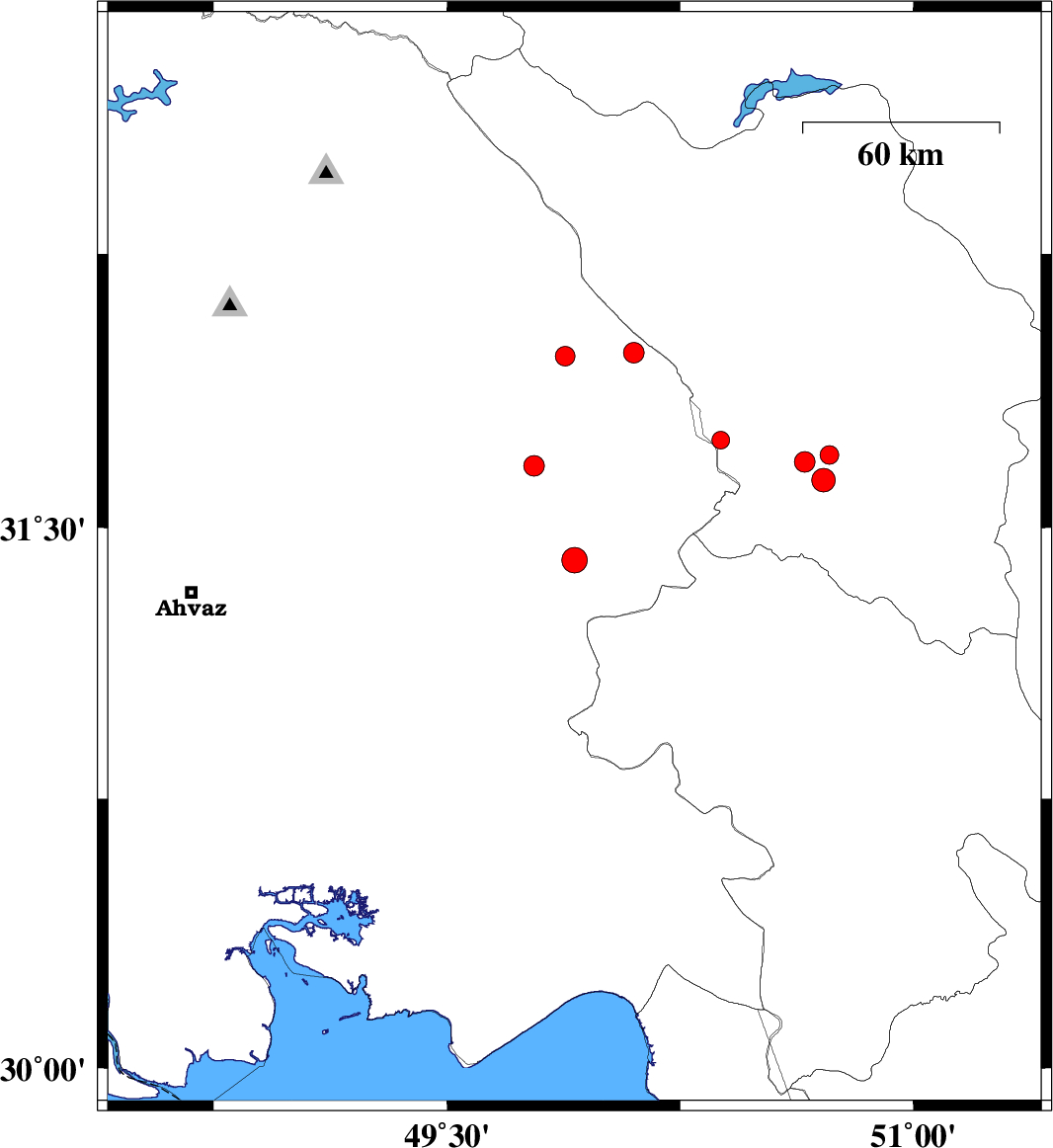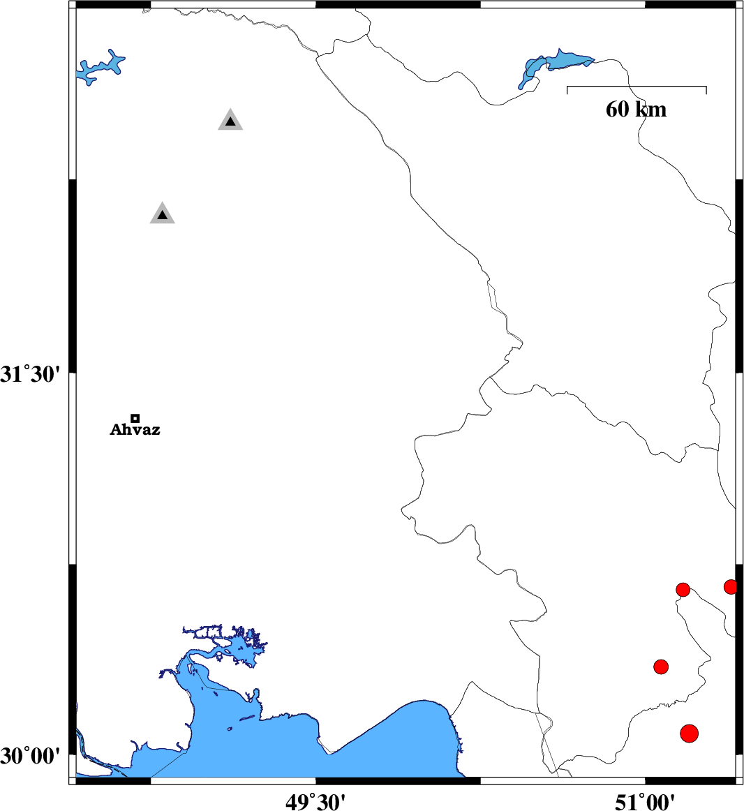 | 2011/09/14 | 15:29:55.4 | 19:59:55.4 | 31.41 | 49.91 | 18 | ML3.7 | Khoozestan Province, 12 km South of Bagh Malek | ||