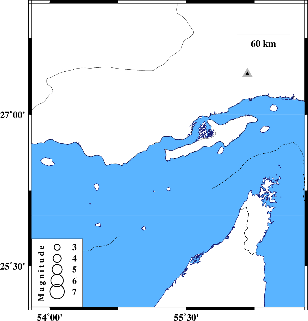 | 2011/09/15 | 04:46:07.7 | 09:16:07.7 | 26.59 | 55.3 | 31 | ML3.6 | Persian Gulf, 45 km East of Bandar-e lengeh |