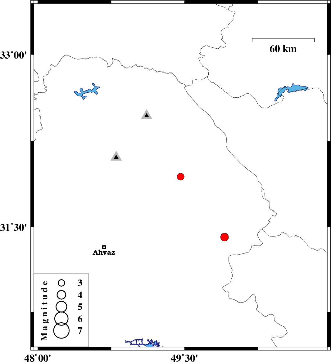 | 2011/09/20 | 00:49:37.4 | 05:19:37.4 | 31.94 | 49.46 | 16 | ML3.2 | Khoozestan Province, 14 km East of Masjed Soleyman | ||
