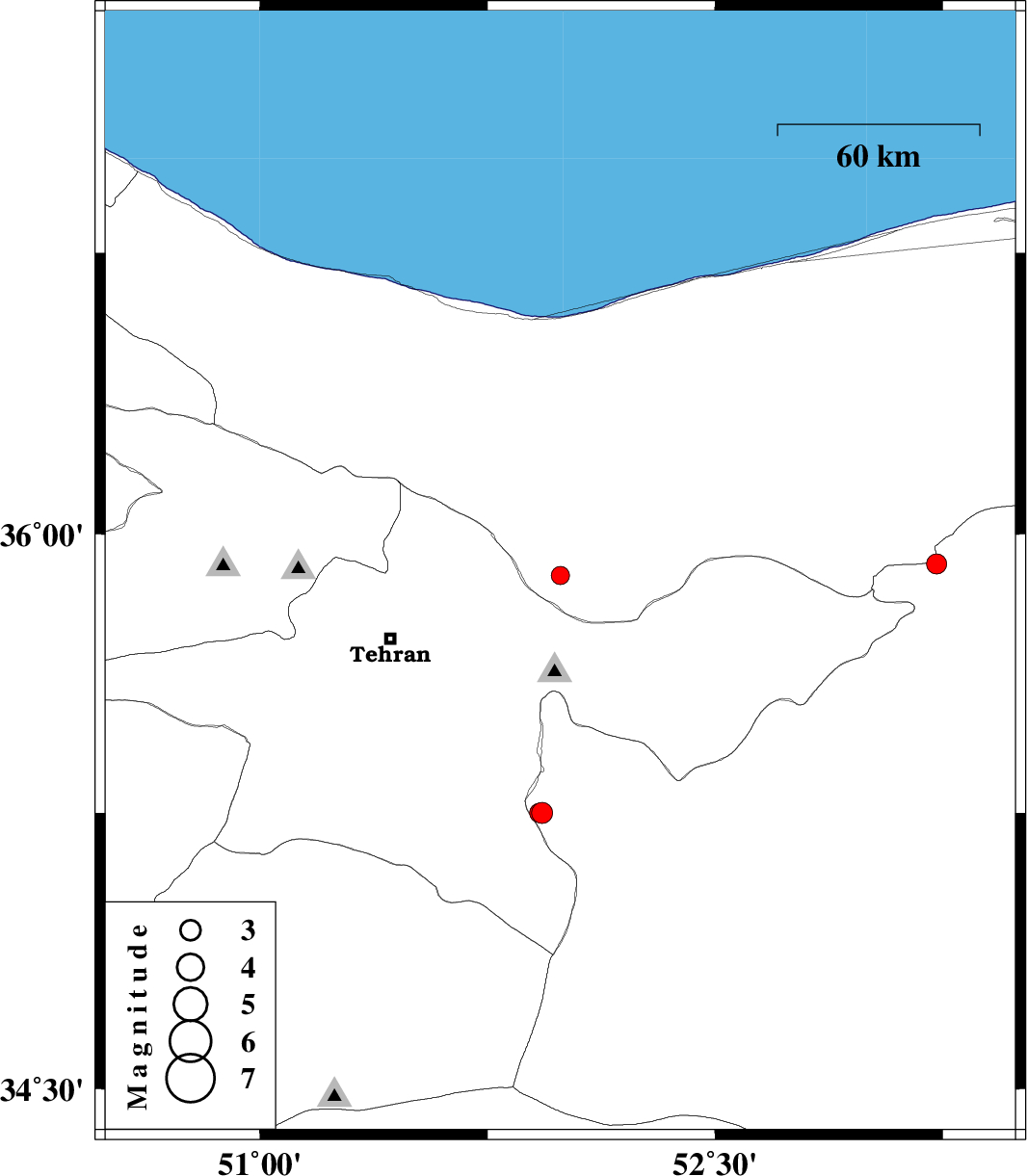 | 2011/10/07 | 00:39:11.2 | 04:09:11.2 | 35.25 | 51.93 | 15 | ML3.1 | Semnan Province, 25 km East of Varamin | ||