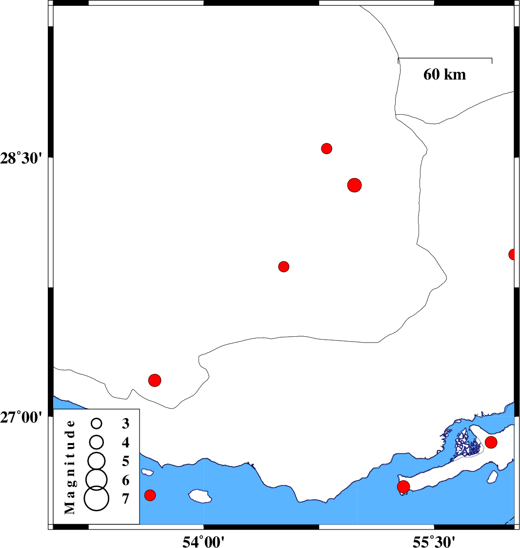 | 2011/10/12 | 20:05:02.3 | 23:35:02.3 | 27.87 | 54.52 | 15 | ML3.1 | Fars Province, 28 km North-East of Lar | ||