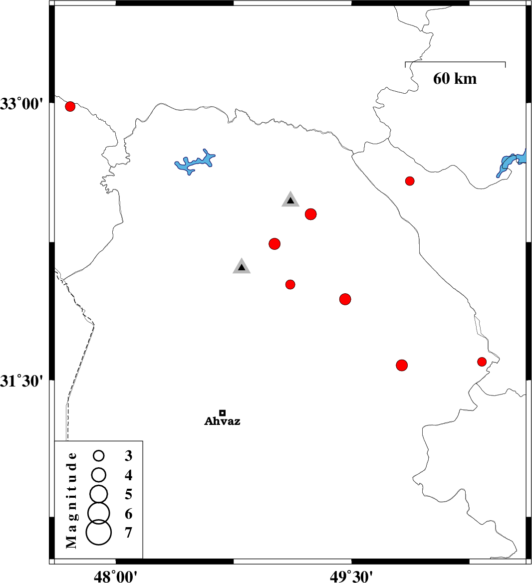 | 2011/09/20 | 00:49:37.4 | 05:19:37.4 | 31.94 | 49.46 | 16 | ML3.2 | Khoozestan Province, 14 km East of Masjed Soleyman | ||