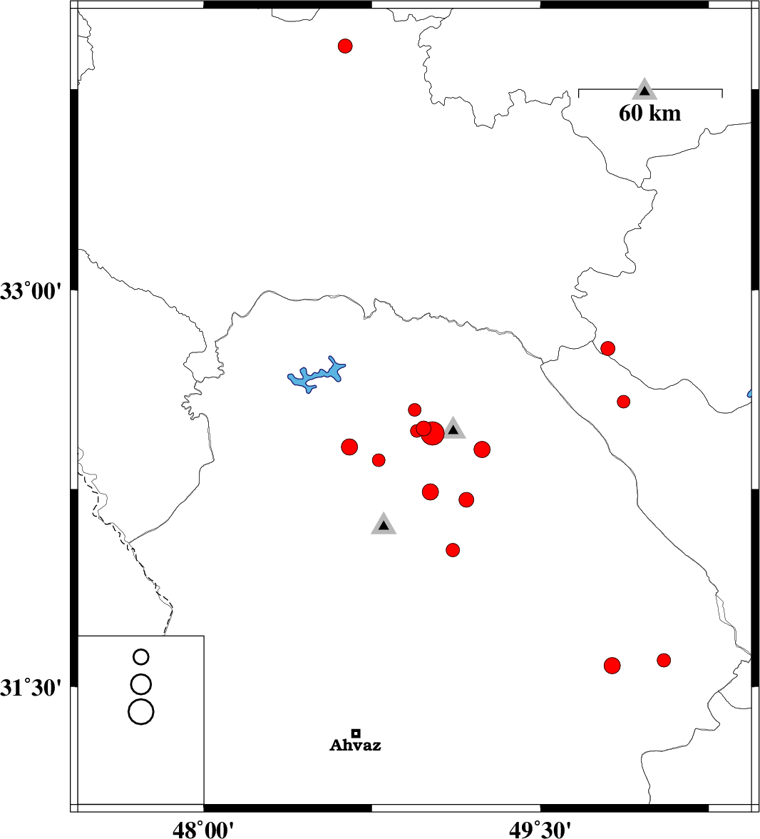 | 2011/10/29 | 04:20:53.4 | 07:50:53.4 | 32.47 | 48.95 | 17 | ML2.5 | Khoozestan Province, 18 km West of Lali | ||